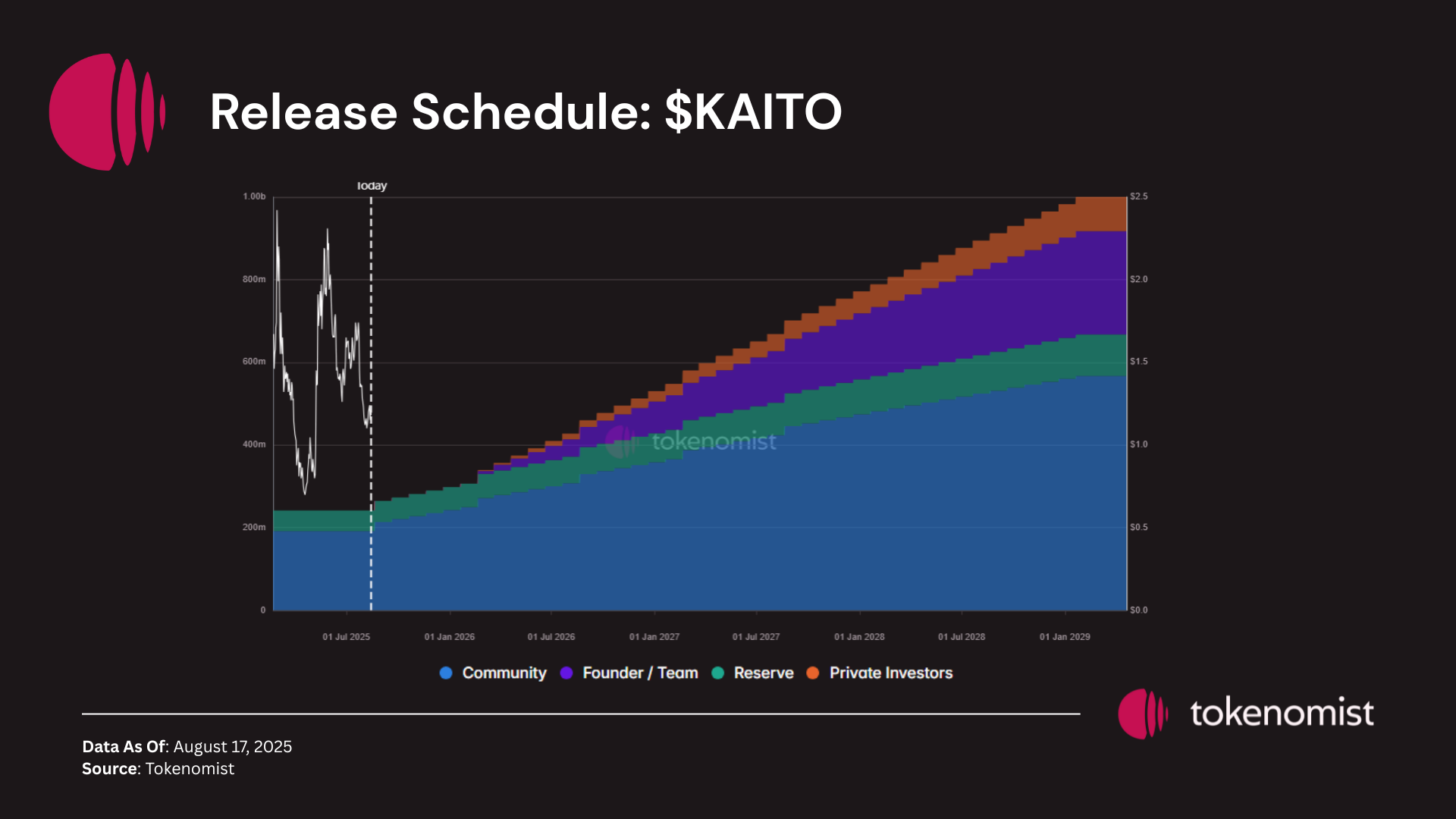 $KAITO saw the week’s largest unlock relative to circulating supply, marking its first cliff since TGE. The release went to community and reserve allocations, introducing a significant supply boost into the market.