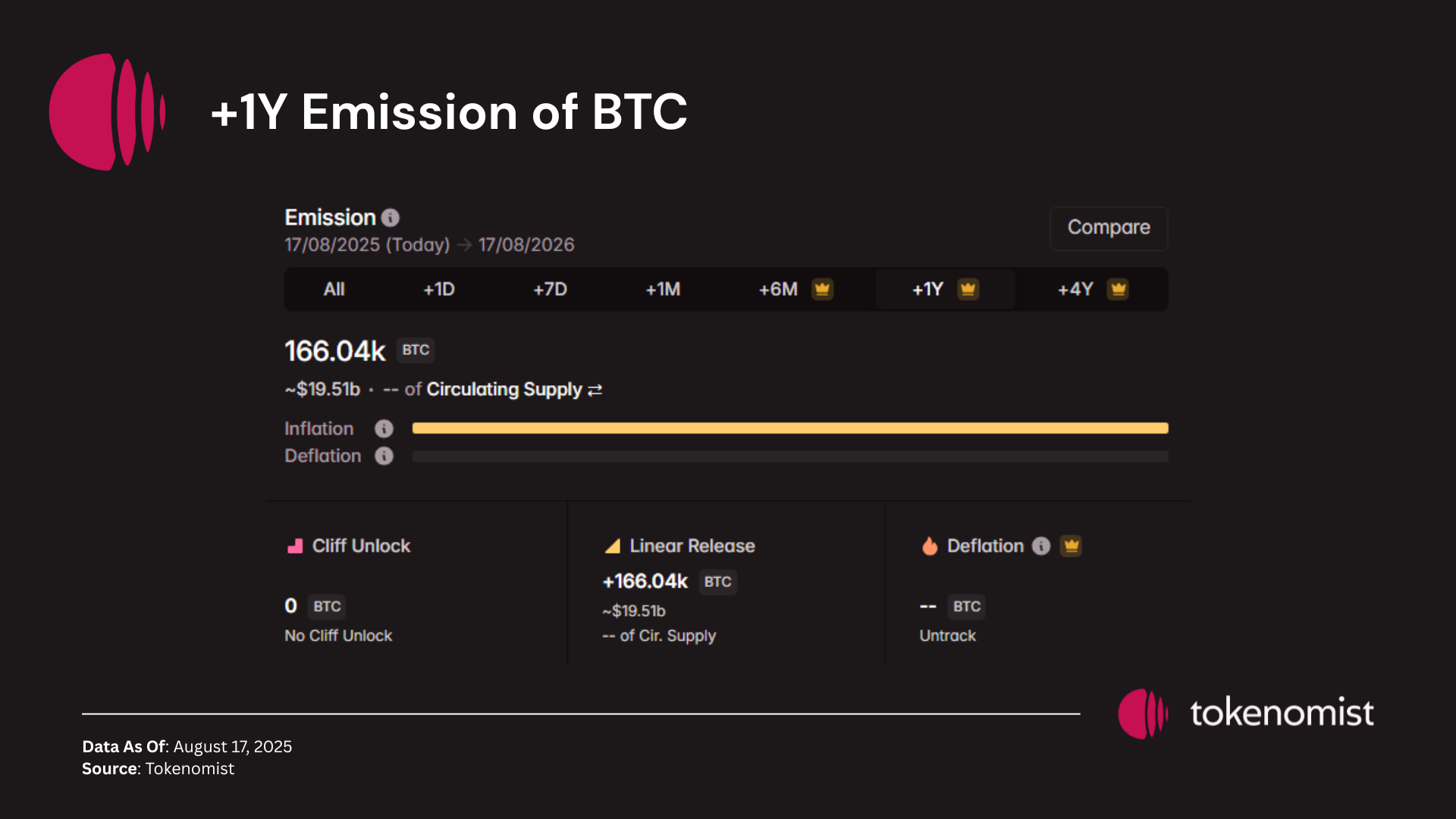 For instance, around 166k BTC is set to be released as mining rewards over the next year.
