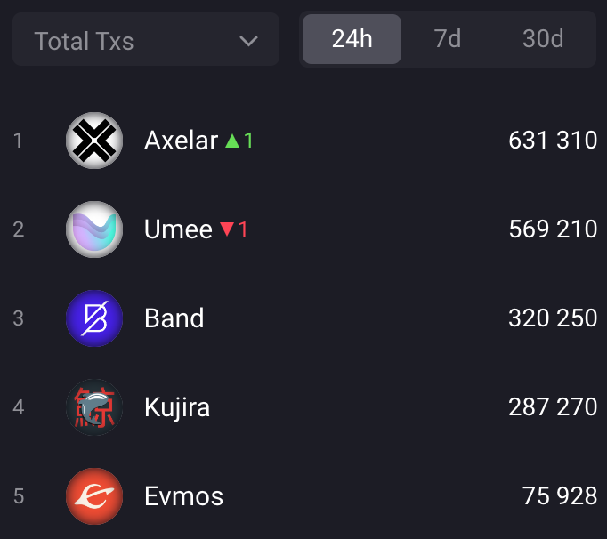 However, when considering the number of transactions, Axelar takes the lead. Axelar serves as an innovative bridge, connecting over 30 different blockchains and facilitating a significant volume of transactions between them.