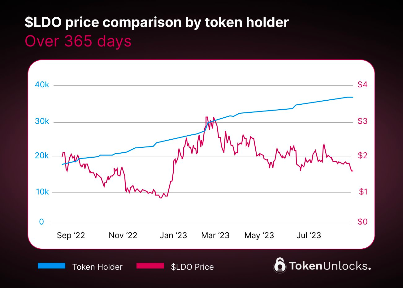In 365 days, $LDO token holders increased by 102%, which implies that they expanded their user base around 2 times.