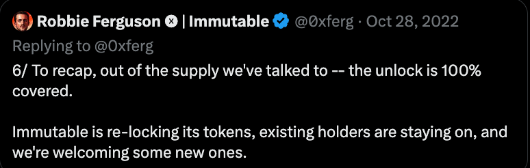 Some tokens have relocked up to increase the trust of projects. And $IMX is one of the projects that has relocked up their token.