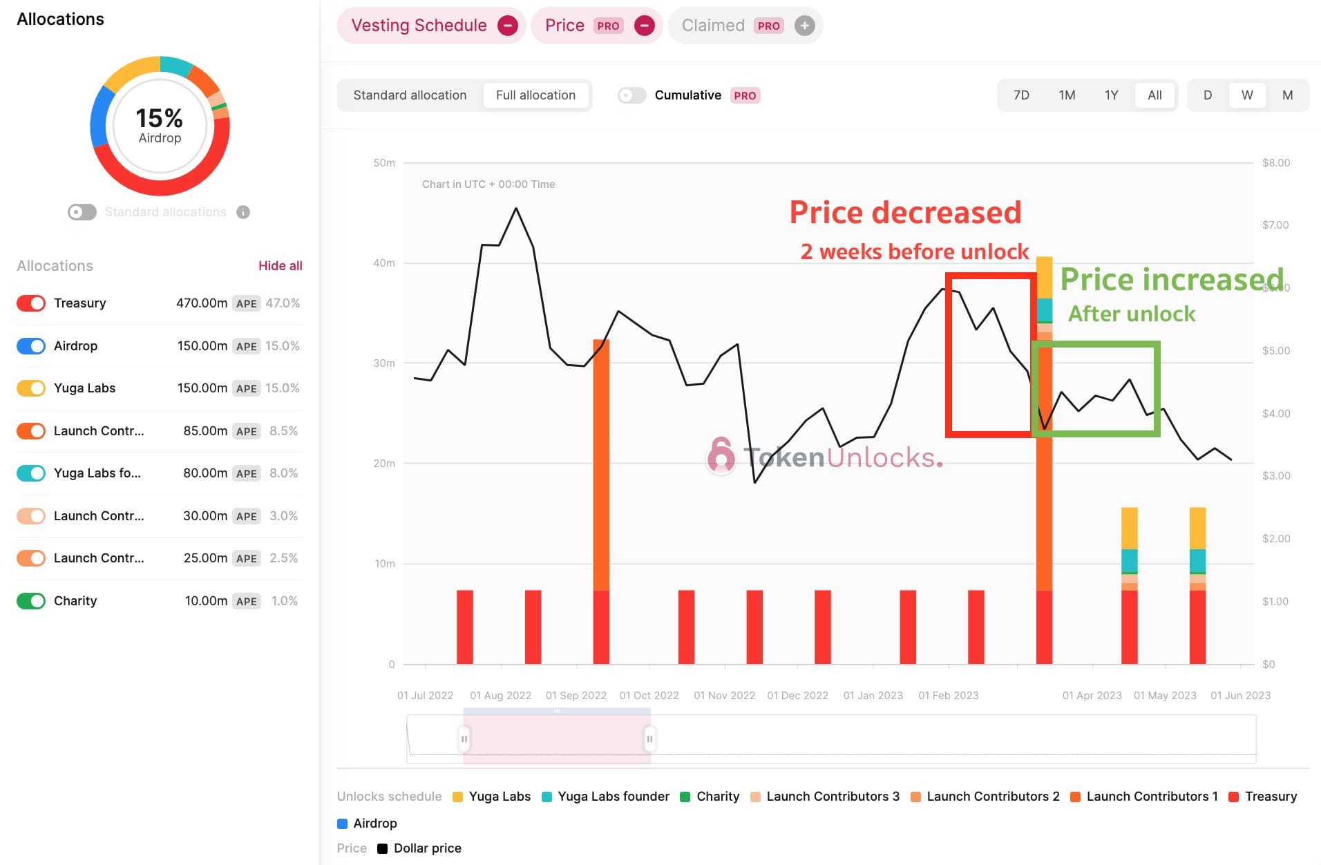 Analyzing token unlocks from projects like $APE reveals price impacts.