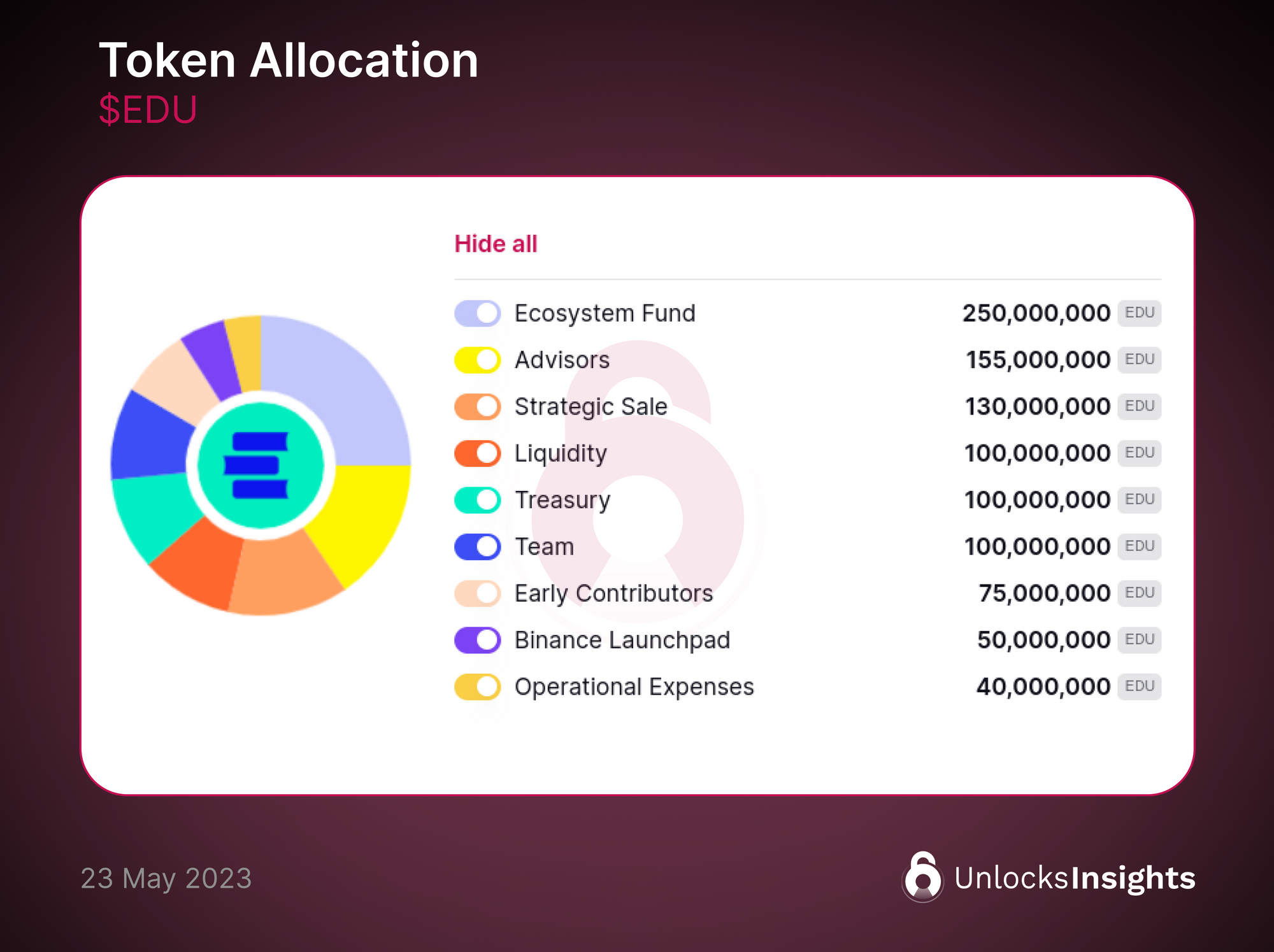 - 5% Initial Liquidity Provision: This share is allocated to provide initial liquidity to the $EDU token.