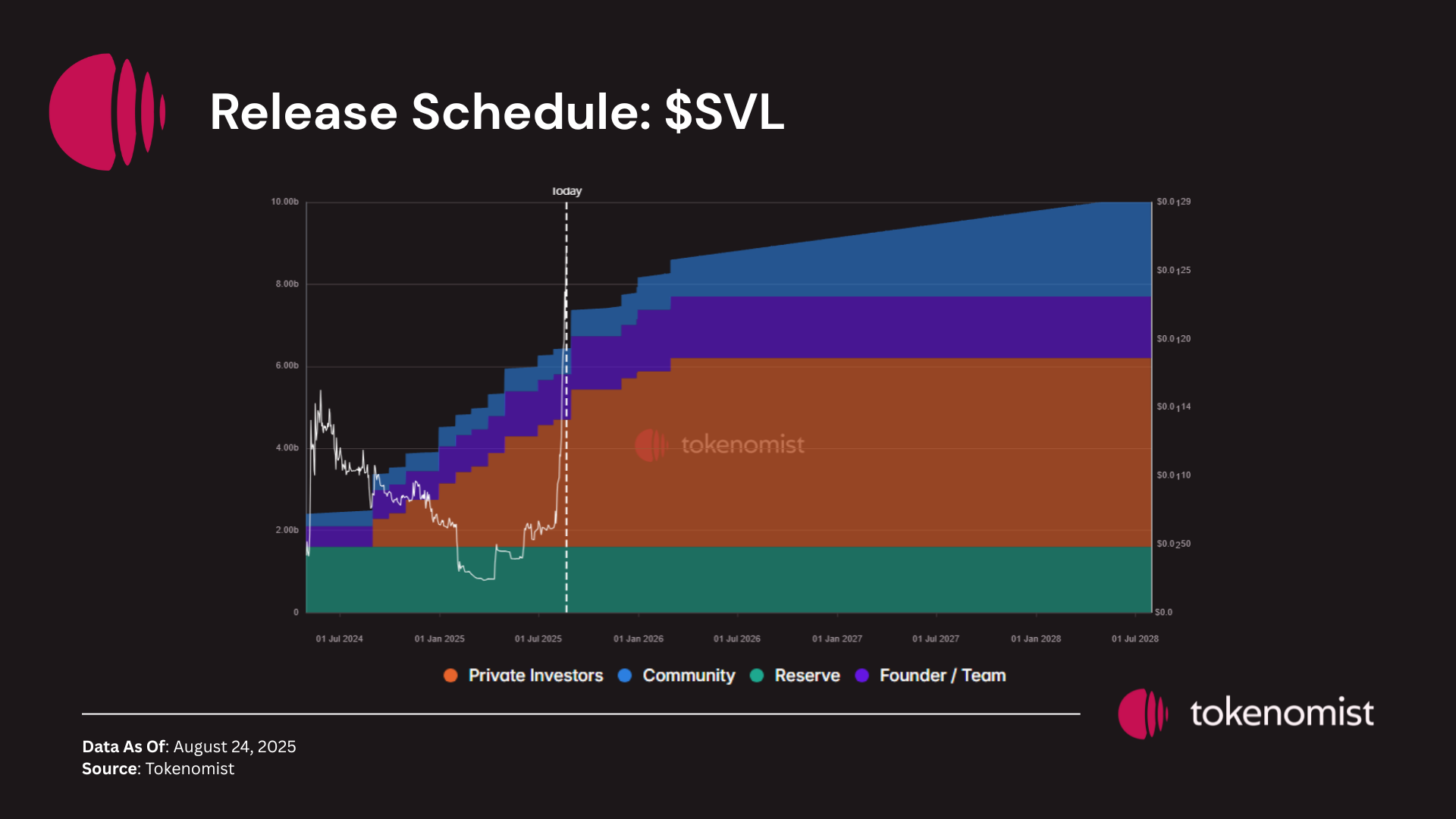 $SVL posted the week’s largest unlock relative to circulating supply, with most tokens released to private investors.