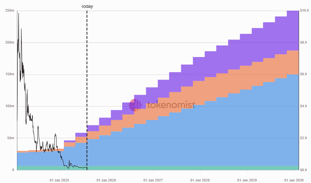 However, the broader GameFi narrative has significantly lost momentum since the last cycle, and $MAVIA’s price action reflects that weakness — consistently sliding to new all-time lows. Without renewed interest in the sector or a fresh catalyst for the project, the upcoming unlock could further weigh on market sentiment.