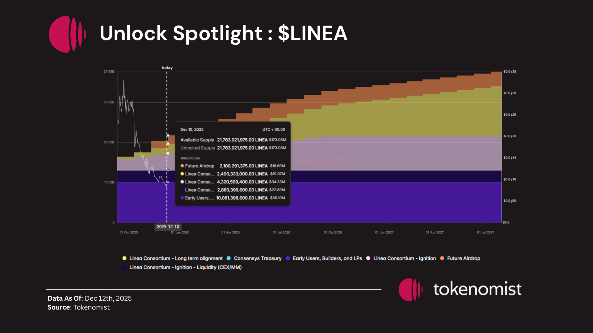 $LINEA records the largest unlock relative to circulating supply this week, with all emissions tied to community allocations.