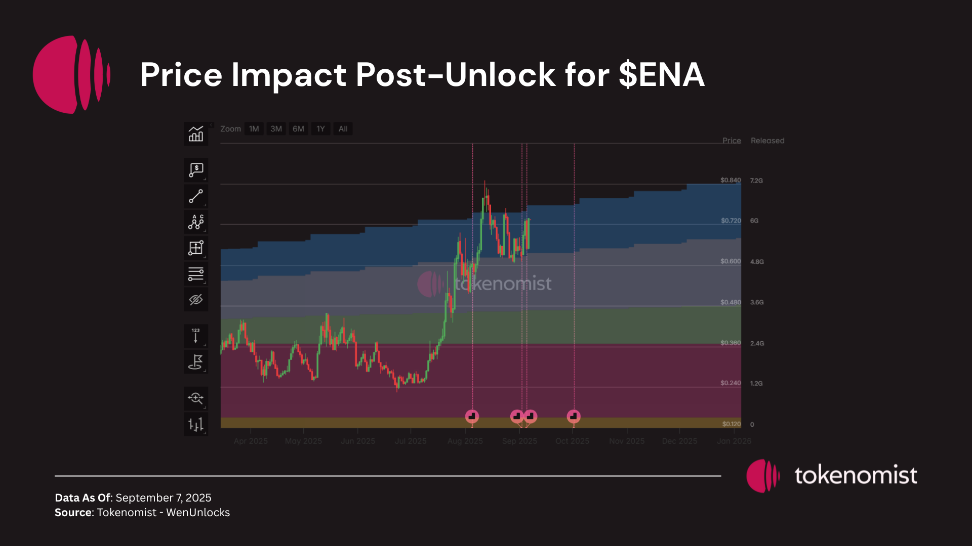 Despite holding the largest unlock value last week, with most of it allocated to insiders, $ENA defied expectations. While the broader market stayed flat, the token gained over 14% as investor interest remained strong. This shows that unlock events don’t always trigger sell pressure — the outcome depends heavily on whether allocation holders choose to realize profits or continue holding.