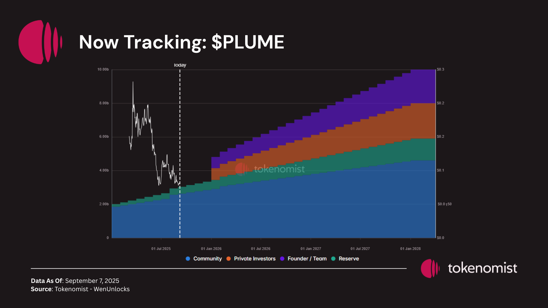 Alongside $WLFI, we’re now tracking $PLUME, a growing name in the RWA space. The key date to watch is January 2026, when its first major cliff unlock will release a large insider allocation compared to the current supply. All of $PLUME’s tokenomics data, including unlock schedules and sector comparisons, is now live on our platform. Track it here to stay ahead.