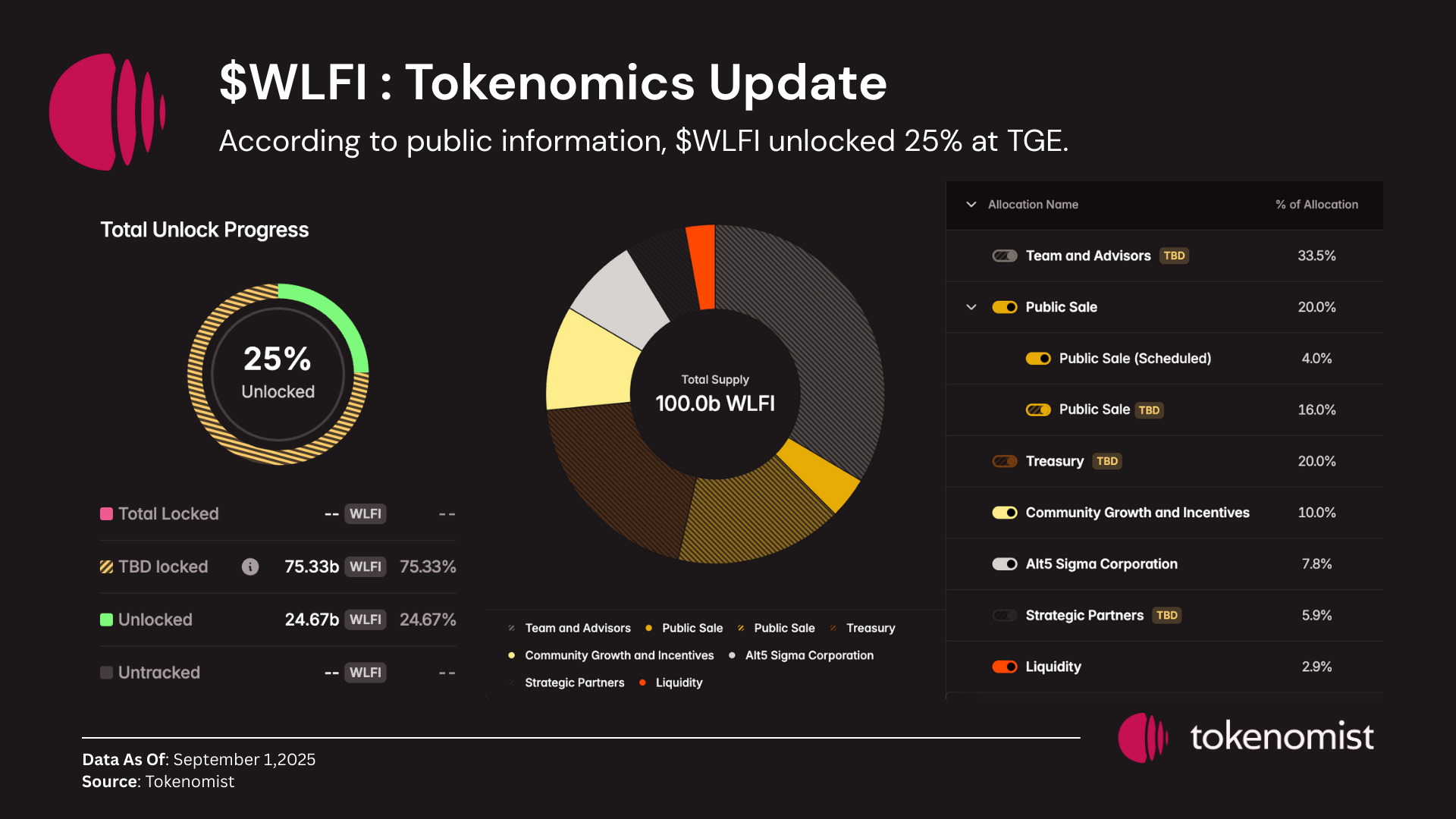 Last week saw the highly anticipated TGE of World Liberty Finance ($WLFI), which drew massive pre-market trading volumes and investor attention. However, confidence was quickly shaken after the team revealed through a Medium update that 25% of supply would be unlocked at launch — a sharp deviation from the previously projected 4–5%.