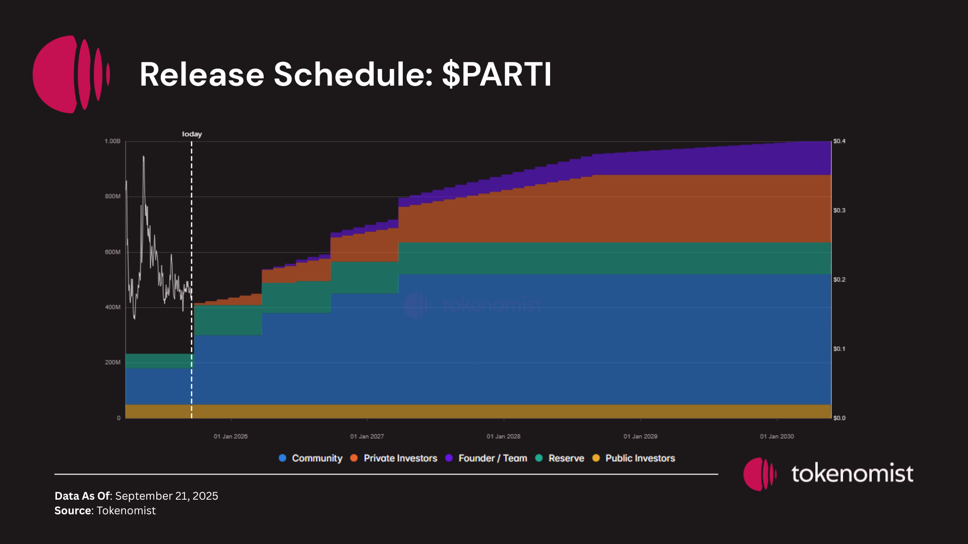 Despite stronger macro tailwinds boosting overall sentiment, $PARTI’s price action remains range-bound — suggesting that investors are still waiting to see how the market absorbs this substantial supply release.