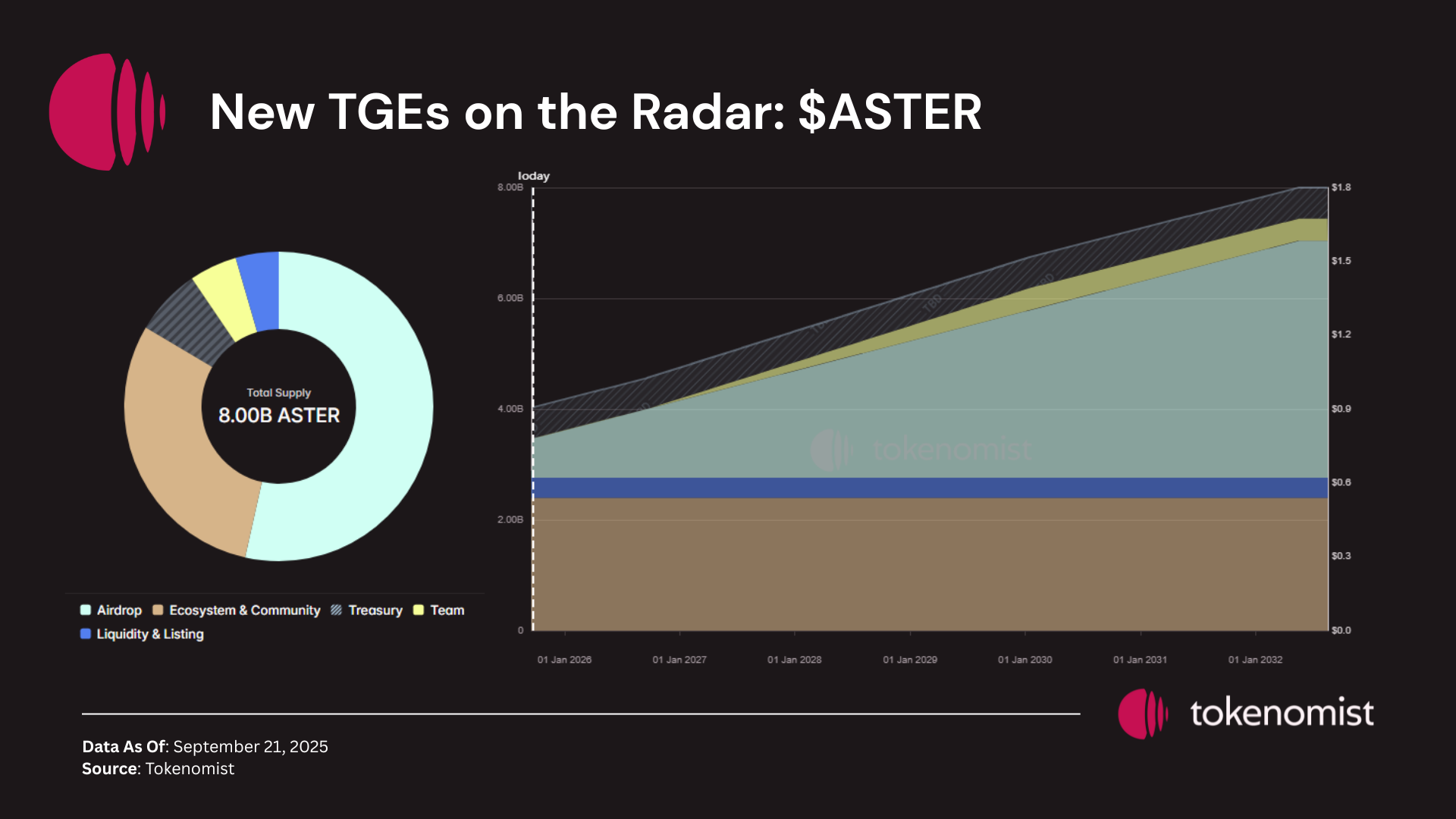 Aster launched with 43% of total supply unlocked at TGE, broken down as: