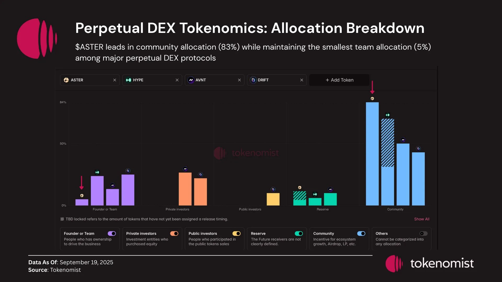 🔸 83% of total supply allocated to the community (Airdrop + Ecosystem & Community) — making it one of the most community-heavy perp DEX tokens in the market.