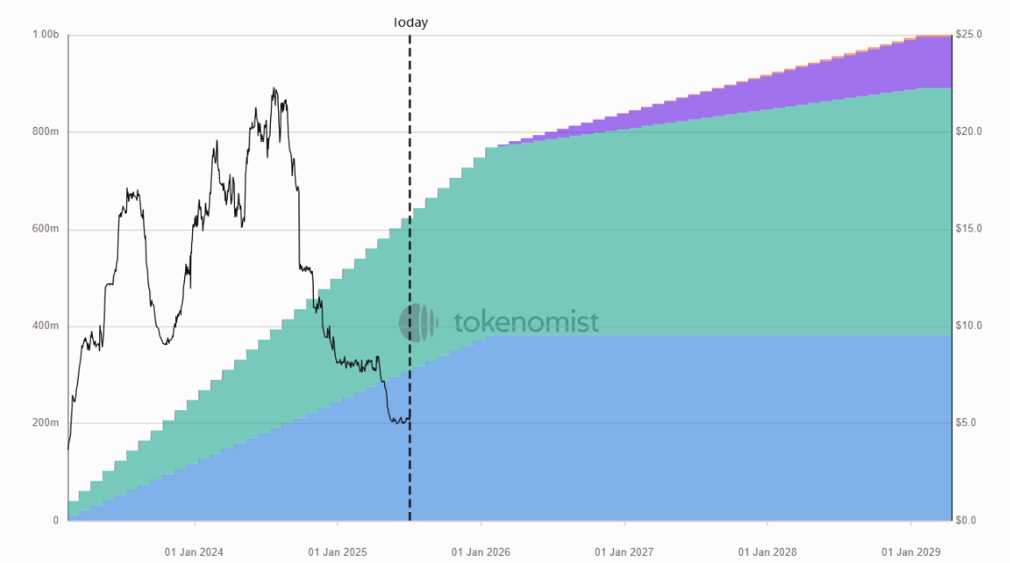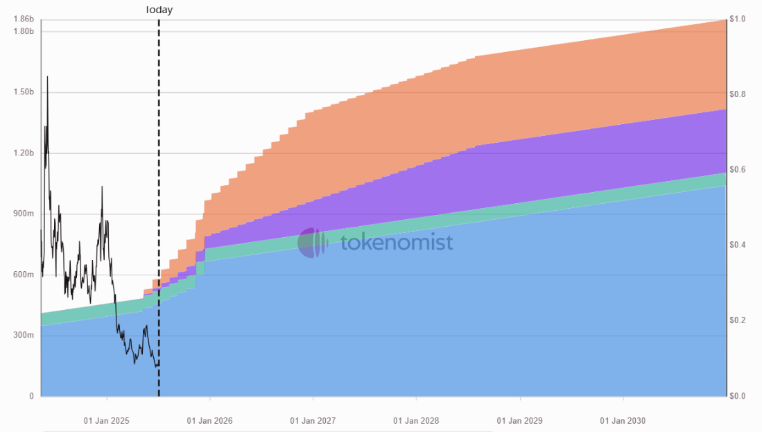 $CHEEL leads this week in terms of total dollar value unlocked. The upcoming release is spread across multiple allocations, both ecosystem incentives and broader distribution efforts. $CHEEL price has struggled over the past year, with its market cap falling from over $850M to around $200M. As new supply enters the market, investors will be watching closely to see whether renewed incentives can revive user engagement and price momentum.