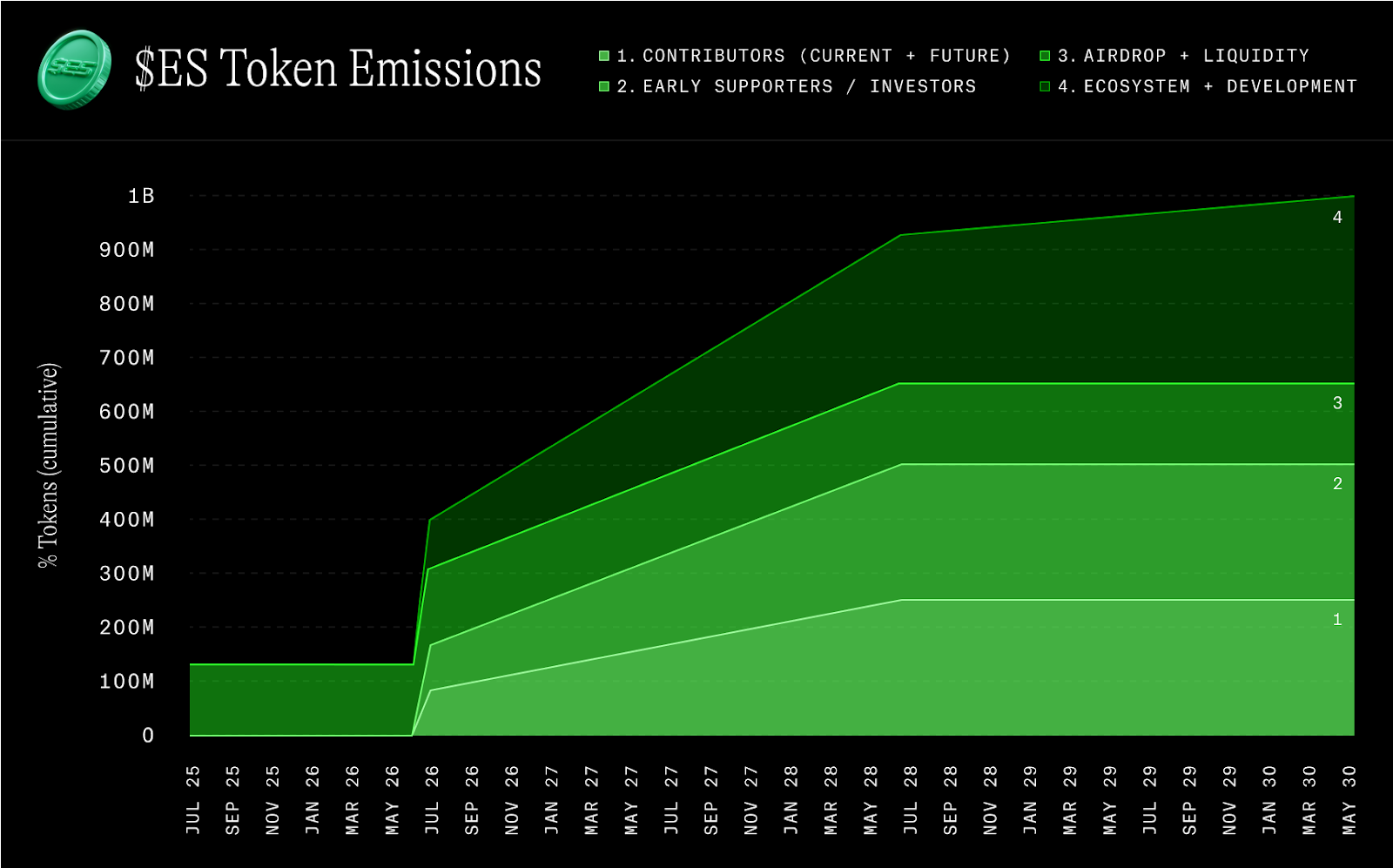 The $ES token follows a low-float, high-FDV structure, with just over 10% of the total supply unlocked at launch. This initial float is primarily allocated for airdrops and liquidity, leaving a large portion of the supply still locked. Given the constrained float and early sell pressure, market participants are closely watching to see whether demand can catch up to valuation in the near term.