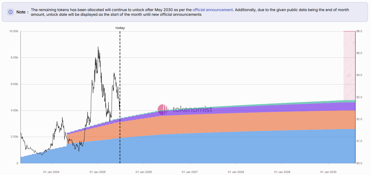 - Vested Allocations: Series B, Community Reserve, Early Contributors, and Mysten Labs Treasury